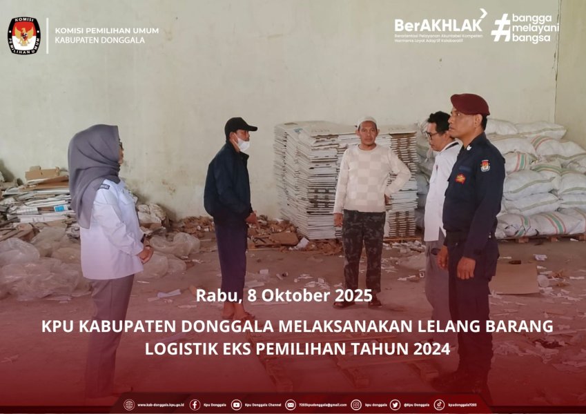 Rabu, 8 Oktober 2025 – Komisi Pemilihan Umum (KPU) Kabupaten Donggala melaksanakan lelang barang eks logistik pemilihan tahun 2024 pada hari Rabu, 8 Oktober 2025. Kegiatan ini merupakan langkah penting dalam pengelolaan aset negara pasca-pemilihan, memastikan pemanfaatan barang bekas secara transparan dan efisien. Barang yang Dilelang: Surat Suara Pemilihan Gubernur dan Wakil Gubernur Provinsi Sulawesi Tengah: Sebanyak 229.871 lembar, yang sebelumnya digunakan dalam proses pemilihan kepala daerah tingkat provinsi. Surat Suara Pemilihan Bupati dan Wakil Bupati Donggala: Sebanyak 231.871 lembar, sebagai bagian dari logistik pemilihan bupati dan wakil bupati di Kabupaten Donggala. Bilik Suara: Sebanyak 2.784 buah, yang berfungsi sebagai tempat pemungutan suara untuk menjaga privasi pemilih. Kotak Suara: Sebanyak 1.424 buah, digunakan untuk menyimpan surat suara selama proses pemungutan suara. Lokasi dan Pelaksanaan: Lelang ini dilaksanakan di Kantor Pelayanan Kekayaan Negara dan Lelang (KPKNL) Palu, dengan tujuan memfasilitasi proses lelang secara profesional dan sesuai prosedur hukum yang berlaku. KPU Kabupaten Donggala berkomitmen untuk menjalankan kegiatan ini dengan prinsip transparansi, akuntabilitas, dan keadilan, guna mendukung pengelolaan barang milik negara. Masyarakat yang berminat dapat mengikuti proses lelang melalui kanal resmi KPKNL Palu. ....