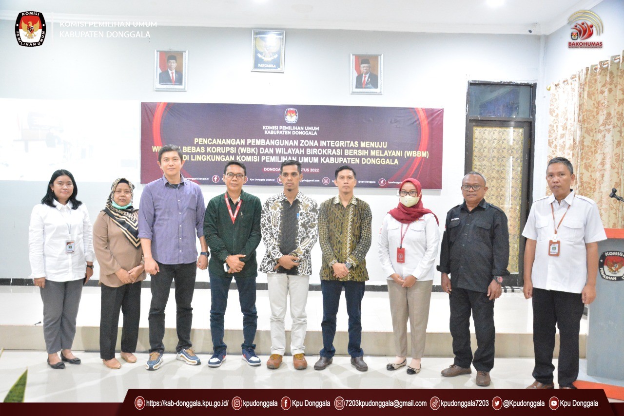 Donggala (11/8/2022). Menyambut hari pemungutan suara Pemilu 14 Februari 2024, Komisi Pemilihan Umum (KPU) Kabupaten Donggala melaksanakan pencanangan Pembangunan Zona Integritas Menuju Wilayah Bebas Korupsi (WBK) dan Wilayah Birokrasi Bersih Melayani (WBBM) di lingkungan Komisi Pemilihan Umum Kabupaten Donggala pada Kamis 11/8/2022.