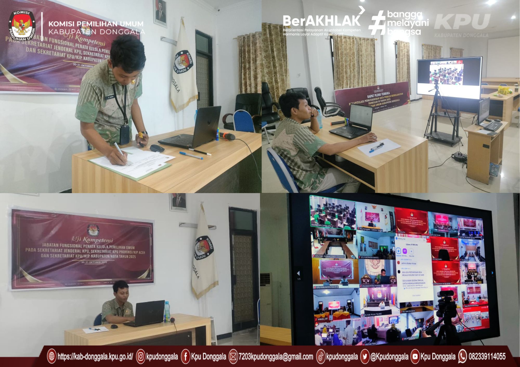 Jumat, 31 Oktober 2025 — Komisi Pemilihan Umum (KPU) Kabupaten Donggala turut serta dalam Uji Kompetensi Jabatan Fungsional Penata Kelola Pemilihan Umum (PKP) Tahun 2025, yang diselenggarakan oleh KPU Republik Indonesia. Kegiatan ini berlangsung pada Jumat, 31 Oktober 2025, di Ruang Rapat Utama Kantor KPU Kabupaten Donggala.