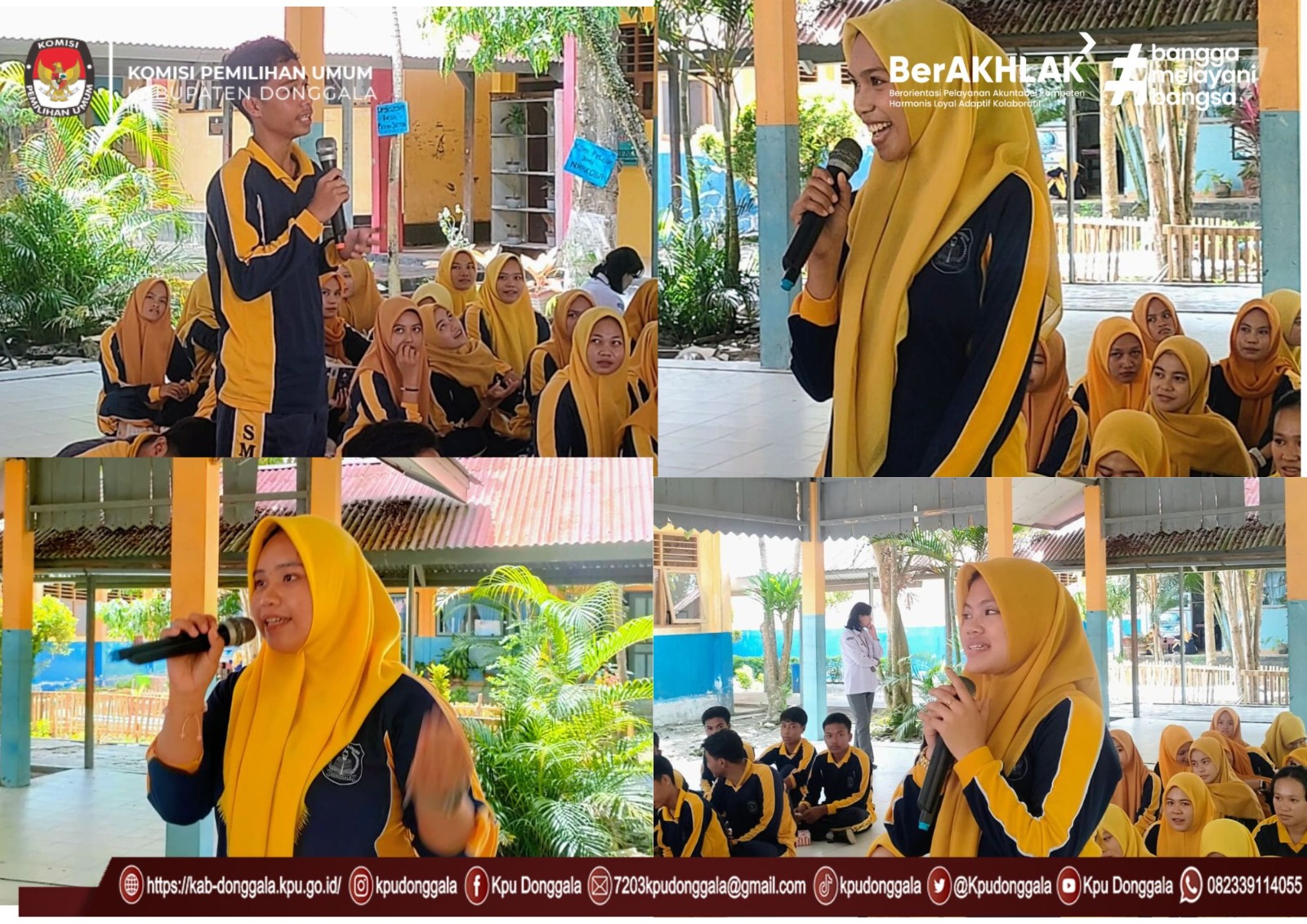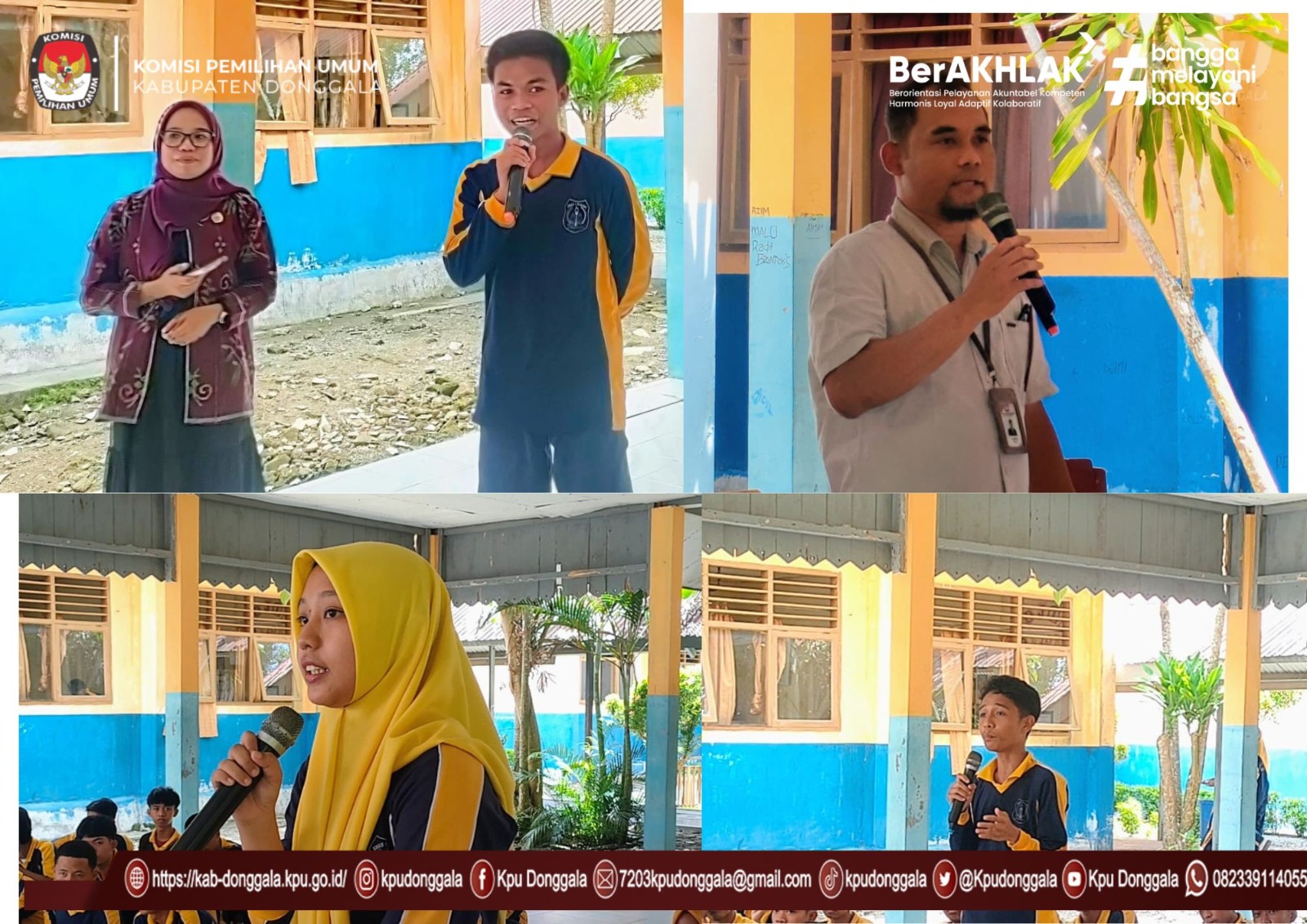 Kegiatan ditutup dengan sesi tanya jawab yang antusias, di mana para siswa aktif mengajukan pertanyaan seputar proses pemungutan suara, syarat menjadi pemilih, hingga peran KPU dalam menjaga netralitas pemilu. Antusiasme ini menjadi bukti nyata bahwa generasi muda Kabupaten Donggala siap menjadi bagian dari demokrasi yang sehat dan berkualitas.