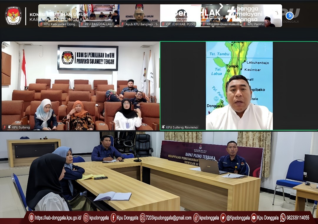 Donggala, 11 November 2025 — Komisi Pemilihan Umum (KPU) Kabupaten Donggala mengikuti Rapat Koordinasi Evaluasi Pengelolaan Jaringan Dokumentasi dan Informasi Hukum (JDIH) yang diselenggarakan oleh KPU Provinsi Sulawesi Tengah secara daring pada Selasa, 11 November 2025. Kegiatan ini diikuti oleh perwakilan dari seluruh KPU Kabupaten/Kota se-Provinsi Sulawesi Tengah, termasuk Anggota Divisi Hukum dan Pengawasan, Kepala Sub Bagian Teknis Penyelenggaraan Pemilu dan Hukum, serta Operator JDIH dari masing-masing satker.