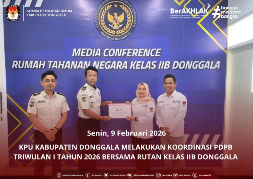 Donggalam 9 Februari 2026– Komisi Pemilihan Umum (KPU) Kabupaten Donggala melakukan kunjungan koordinasi ke Rumah Tahanan Negara (Rutan) Kelas IIB Donggala, Senin (9/2/2026), dalam rangka Pemutakhiran Data Pemilih Berkelanjutan (PDPB) tahun 2026. Kunjungan dipimpin langsung oleh Ketua KPU Donggala bersama Anggota KPU Divisi Perencanaan, Data, dan Informasi, didampingi staf sekretariat.