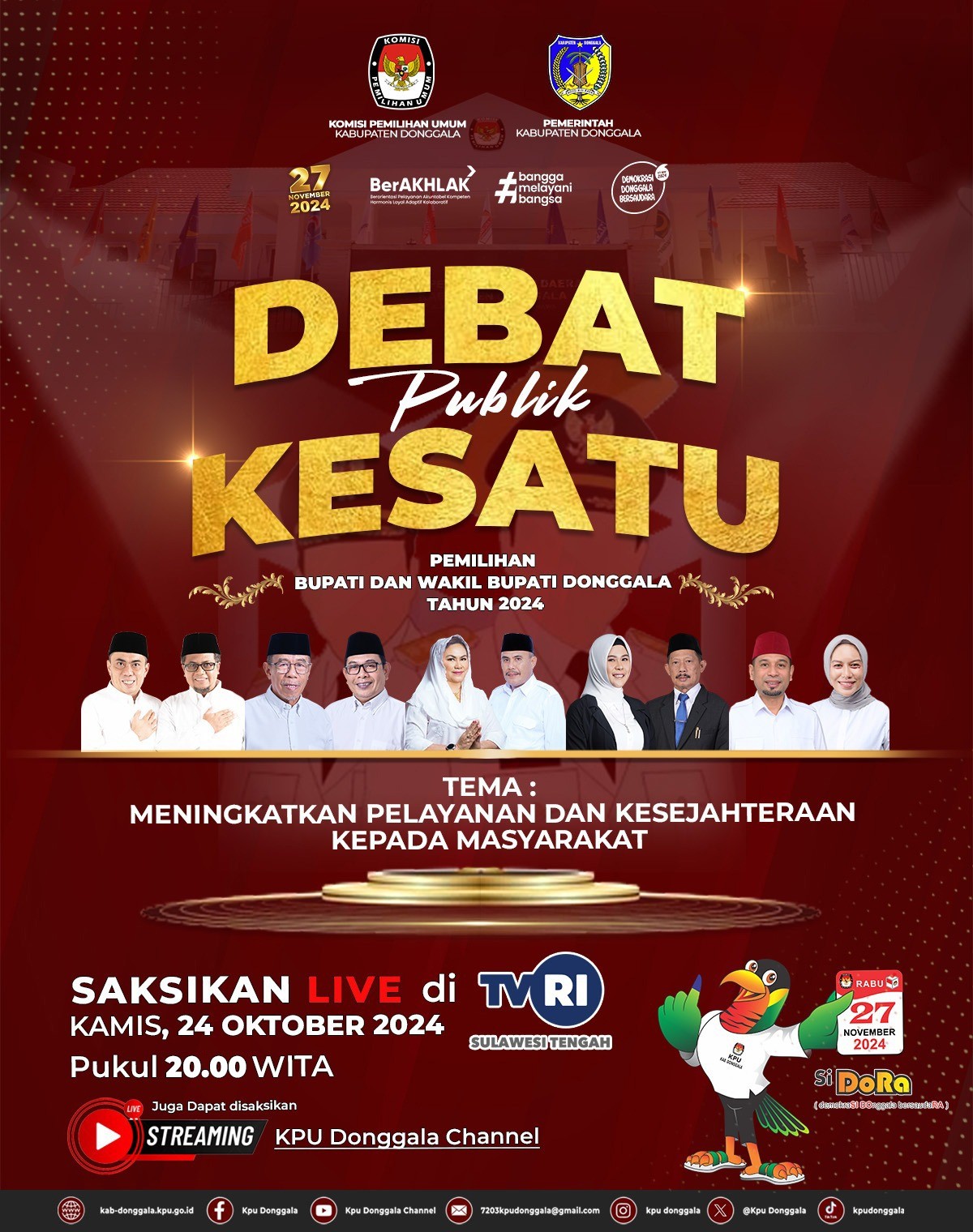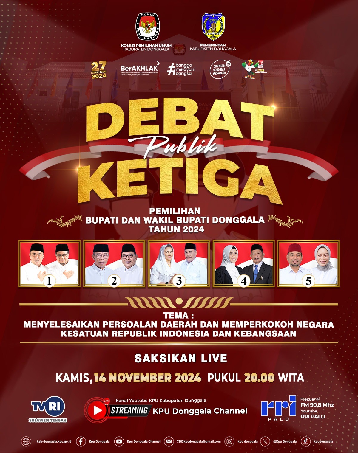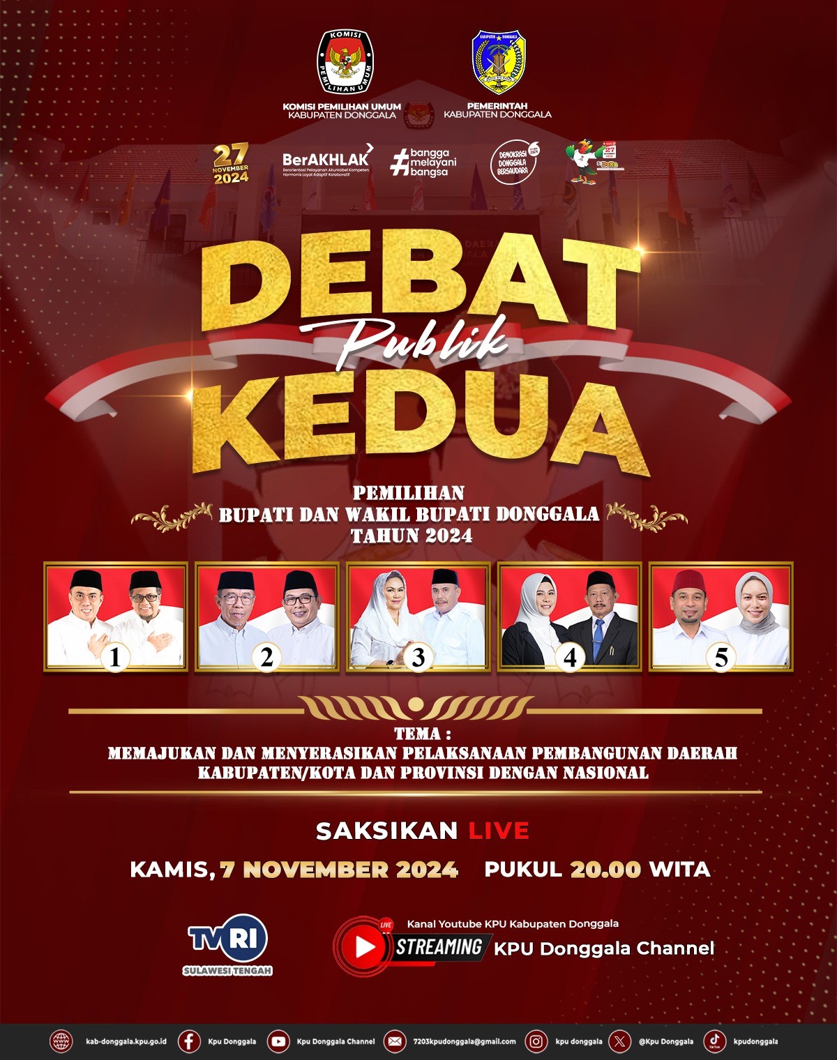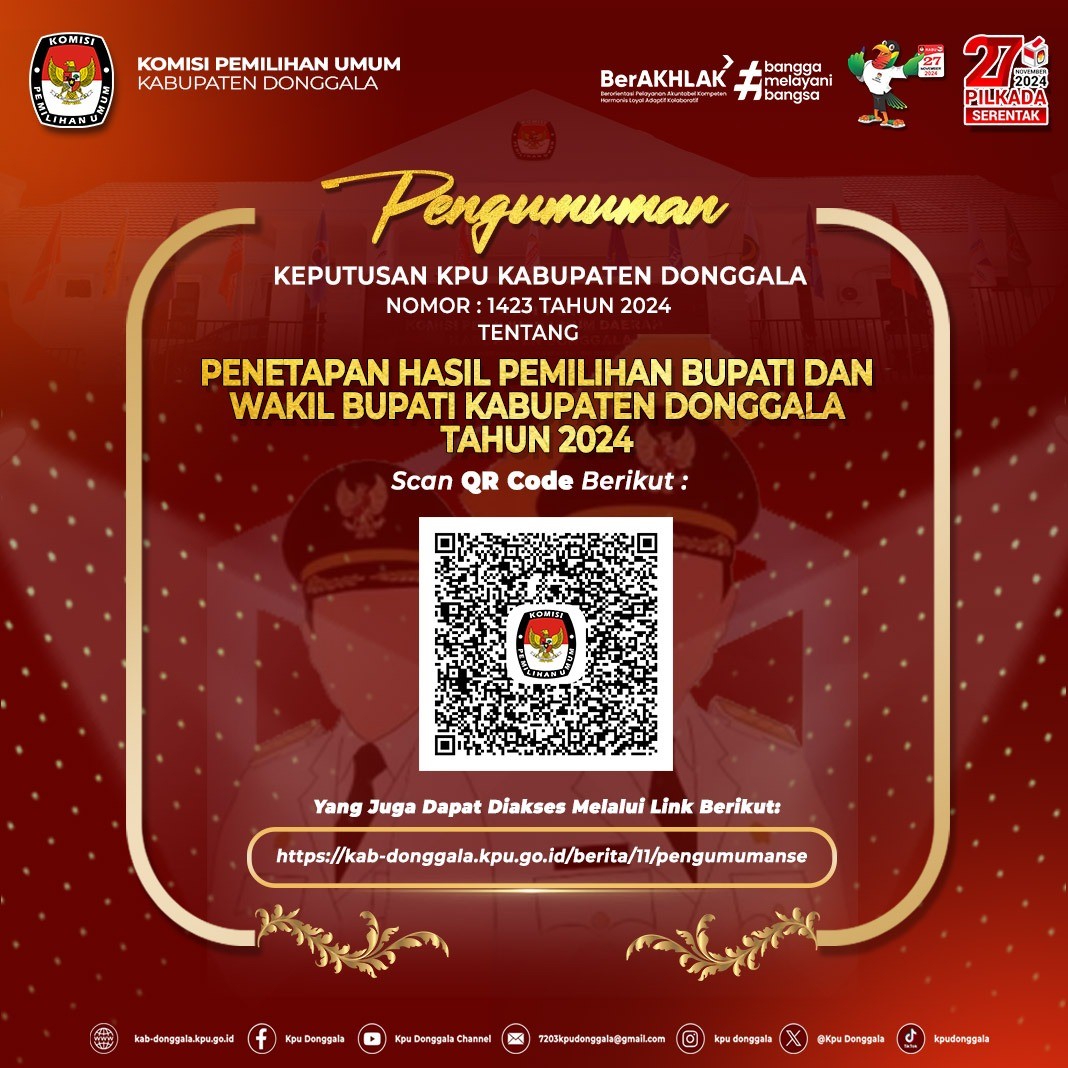 Sesuai dengan Ketentuan Peraturan KPU Nomor 14 Tahun 2024 tentang Dana Kampanye Peserta Pemilihan Gubernur Dan Wakil Gubernur, Bupati dan Wakil Bupati, Serta Walikota dan Wakil Walikota dengan ini KPU Kabupaten Donggala mengumumkan Hasil Penerimaan Laporan Awal Dana Kampanye (LADK) Pasangan Calon Bupati dan Wakil Bupati pada Pemilihan Bupati dan Wakil Bupati Kabupaten Donggala Tahun 202