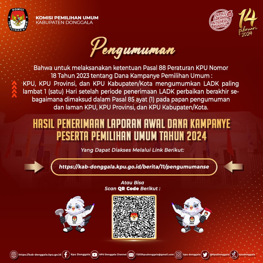 n. Pengumuman sebagaimana dimaksud dalam huruf m dilakukan di tempat yang mudah diakses oleh masyarakat dalam wilayah kerja KPU Kabupaten/Kota selama 7 (tujuh) Hari dan melalui laman resmi KPU.