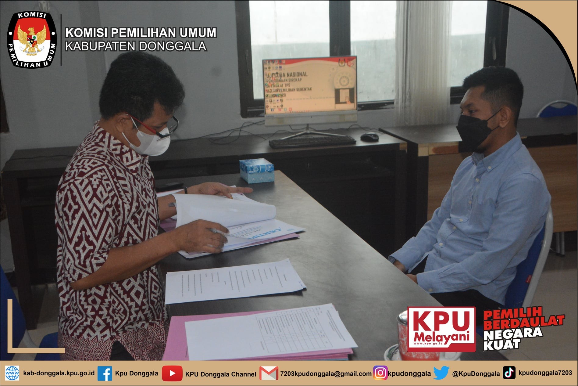DONGALA (13/1/2022). Pegawai Pemerintah Non Pegawai Negeri (PPNPN) Sekretariat KPU Kabupaten Donggala mengikuti kegiatan apel pagi bersama PPNPN KPU Provinsi Sulawesi Tengah, KPU Kota Palu dan KPU Kabupaten Sigi. Apel pagi ini dilaksanakan dalam rangka penyerahan secara simbolis SK pengangkatan PPNPN KPU Provinsi Sulawesi Tengah dan KPU Kabupaten/Kota. Kegiatan apel pagi ini dipimpin langsung oleh Ketua Divisi Sosdiklih Parmas dan SDM KPU Provinsi Sulawesi Tengah, Dr. Sahran Raden, S.Ag, SH, MH, beliau menitipkan pesan dan harapan kepada seluruh PPNPN di masing-masing satuan kerja agar selalu meningkatkan kinerja kerja. “Ada 2 hal yang kita ketahui bersama, bahwa PPNPN ini ada yang sudah menjadi pegawai PPNPN sebelumnya kemudian diperpanjang kembali maka tentu saja sudah punya banyak pengalaman dan PPNPN yang baru tentu harus menyesuaikan. Saya berpesan kepada saudara-saudara sekalian agar kita selalu meningkatkan kinerja dan mengoptimalisasi karya kita bersama sesuai dengan tugas dan fungsi masing-masing di satuan kerja KPU Provinsi maupun Kabupaten/Kota” . Ungkapnya. Usai apel, kegiatan dilanjutkan dengan penyerahan SK pengangkatan PPNPN tahun 2022. Kemudian seluruh PPNPN KPU Provinsi, Kota Palu, Kabupaten Donggala dan Sigi mengikuti arahan dari Ketua Divisi Sosdiklih Parmas dan SDM KPU Provinsi Sulawesi Tengah, Dr. Sahran Raden, S.Ag, SH, MH dan Sekretaris KPU Provinsi Sulawesi Tengah, Mohammad Taufiq, S.STP berkaitan dengan tugas dan fungsi PPNPN dimasing-masing bidang dan untuk 10 Kabupaten lainnya mengikuti secara daring. Pembekalan dibuka oleh Kabag Hukum dan SDM Sekretariat KPU Provinsi Sulawesi Tengah, Rizal Jasman, SH dan dilanjutkan arahan pertama dari Sekretaris KPU Provinsi Sulawesi Tengah. Mohammad Taufiq dalam arahannya menyampaikan bahwa PPNPN yang terpilih merupakan orang-orang yang memenuhi kualifikasi kompetensi yang sangat baik. “Bapak ibu yang ada dihadapan kami ini merupakan orang yang mempunyai kualifikasi kompetensi yang sangat baik dalam menjadi PPNPN yang akan membantu KPU dalam hal ini yaitu Sekretariat dalam membantu kerja-kerja KPU agar semakin baik ke depan. Olehnya kami berharap dengan diberikan bapak ibu penghasilan sebesar UMP sebagai PPNPN, maka luar biasa juga jasa yang bapak ibu berikan kepada kami”. Tutupnya. Dilanjutkan dengan arahan Ketua Divisi Sosdiklih Parmas dan SDM KPU Provinsi Sulawesi Tengah, Dr. Sahran Raden, S.Ag, SH, MH menyampaikan bahwa Pemilu dan Pemilihan di tahun 2024 akan sangat berat olehnya untuk mensukseskannya KPU memerlukan sumber daya manusia yang berkualitas. “ Ke depan kita memiliki tugas berat untuk mensukseskan Pemilu dan Pemilihan tahun 2024 dengan baik, karena Pemilu dan Pemilihan ini merupakan ajang rekrutmen pejabat eksekutif dan legislatif. Jadi salah satu faktor dalam keberhasilan KPU dalam menyelenggarakan Pemilu dan Pemilihan itu terletak pada kesiapan dan profesionalitas sumber daya manusia KPU sendiri, terdiri dari Komisioner dan dibantu oleh Sekretariat yang didalamnya terdapat PPNPN yang bertanggung jawab penuh atas masing-masing tugasnya mulai dari bidang pramubakti, operasional teknis, pengamanan dalam, pengemudi dan administrasi”. Tutupnya.