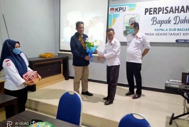 Donggala (03/09/2020). KPU Kabupaten Donggala melaksanakan perpisahan Kepala Sub Bagian Teknis dan Hupmas yang memasuki masa purnatugas pada tanggal 01 September 2020. Acara berlangsung di Aula Kantor KPU Kabupaten Donggala pada Kamis 03 September 2020. Hadir dalam acara tersebut Sekretaris KPU Provinsi Sulawesi Tengah Drs. H. Moh. Nur Bakti, M.Si, Sekretaris KPU Kabupaten Donggala Muhammad Yahya, SH, Para Kepala Sub Bagian serta seluruh pegawai Sekretariat KPU Kabupaten Donggala, dan hadir pula Bapak Aenudin Bahudin mantan Kepala Sub Bagian Keuangan, Umum dan Logistik yang purnatugas tahun kemarin.